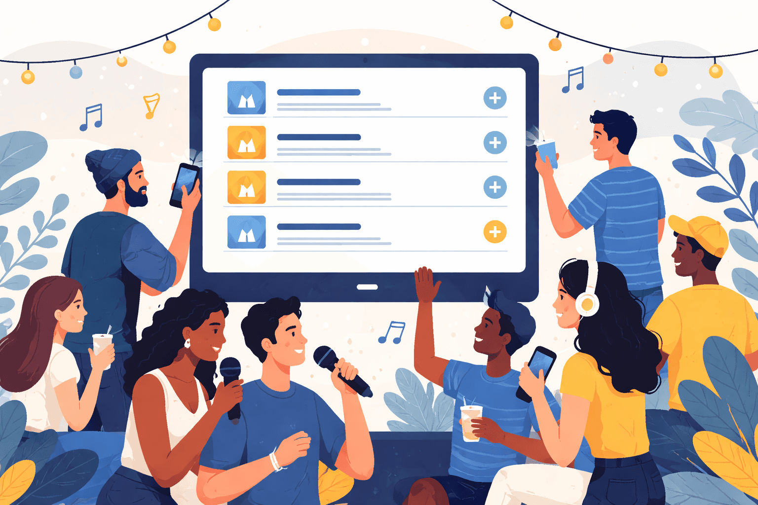 Skapa ett delat musikrum och bygg en spellista tillsammans. Perfekt för gemenskapsträffar, karaokekvällar och evenemang. Alla kan lägga till låtar och njuta av musik som en grupp.